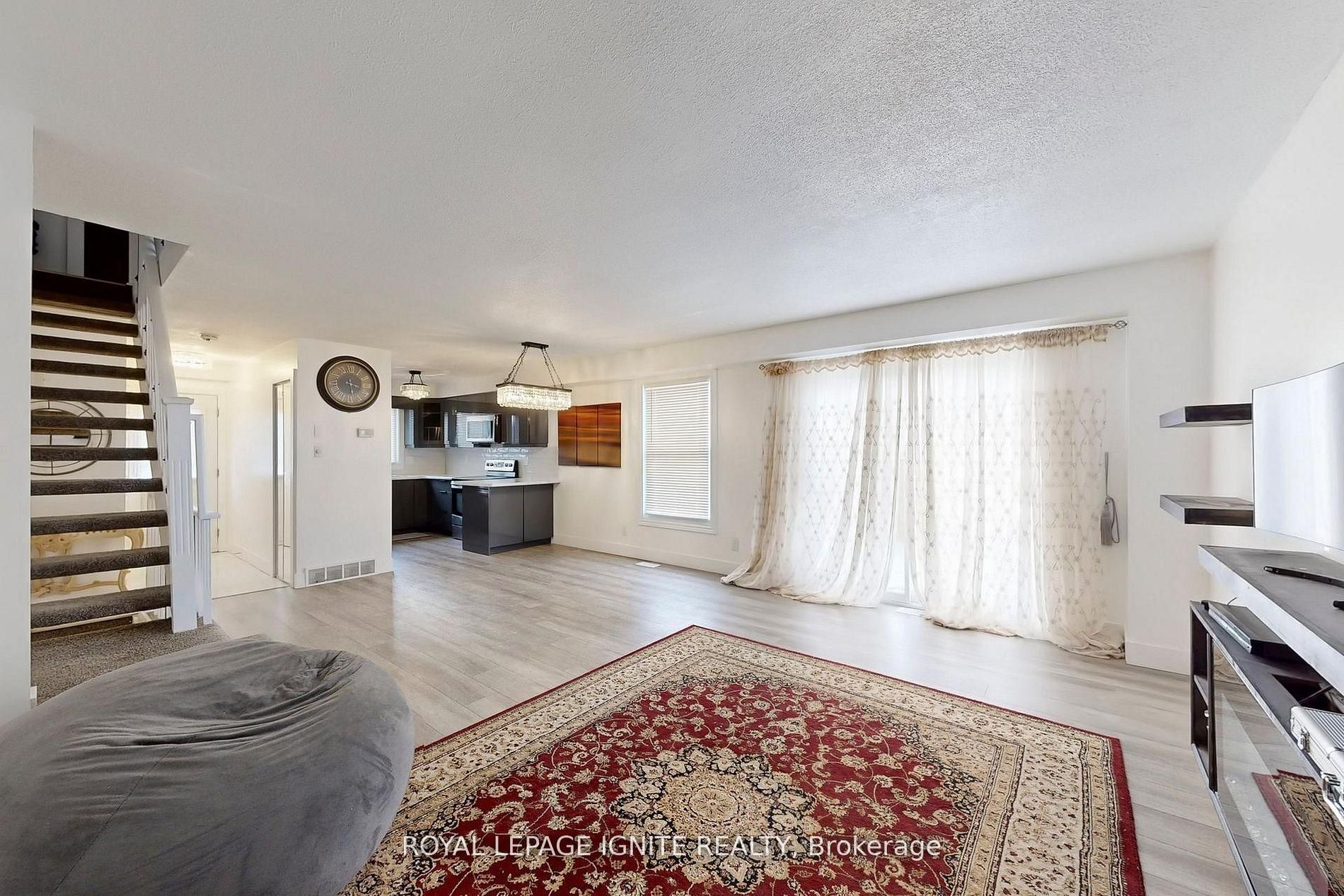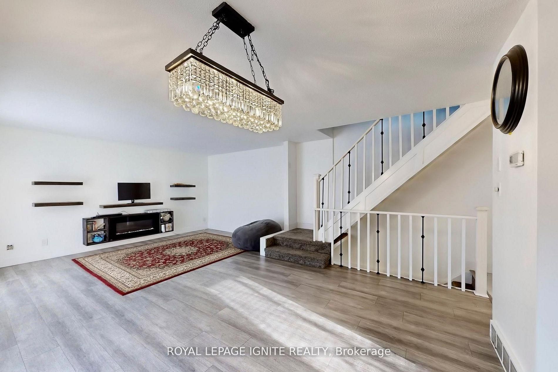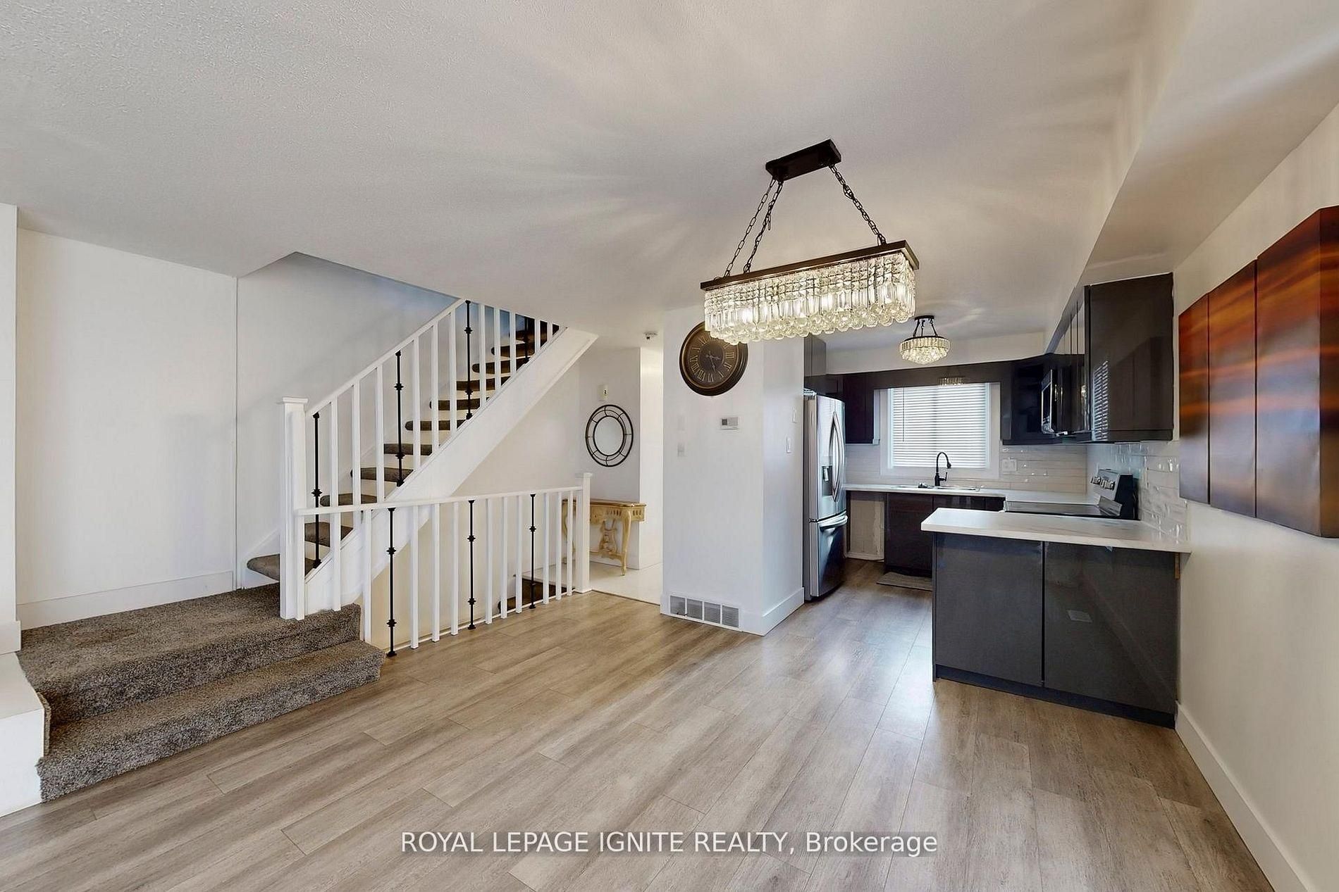 Welcome to Unit 26 at Sunrise Village, a rare 2-storey End unit that has been meticulously transformed from top to bottom. This3+2 bedroom, 3-bathroom home offers over 1,100 sq. ft. of modern living space, featuring high-efficiency forced air gas heat and central AC-A premium upgrade for this community. The bright, open-concept main floor flows seamlessly into a private, fully fenced outdoor patio, perfect for summer entertaining. The finished lower level is a versatile sanctuary with two lounge spaces modern 4-piece bathroom, walk-in shower. Located steps from Argyle Mall, Near Fanshaw Collage, Top schools, and transit, this move-in-ready gem offers sophisticated living with low maintenance fees ($345) that include water and two parking spots. Don't miss the best-positioned unit in the Complex, making it an ideal choice for both savvy investors and first-time buyers.