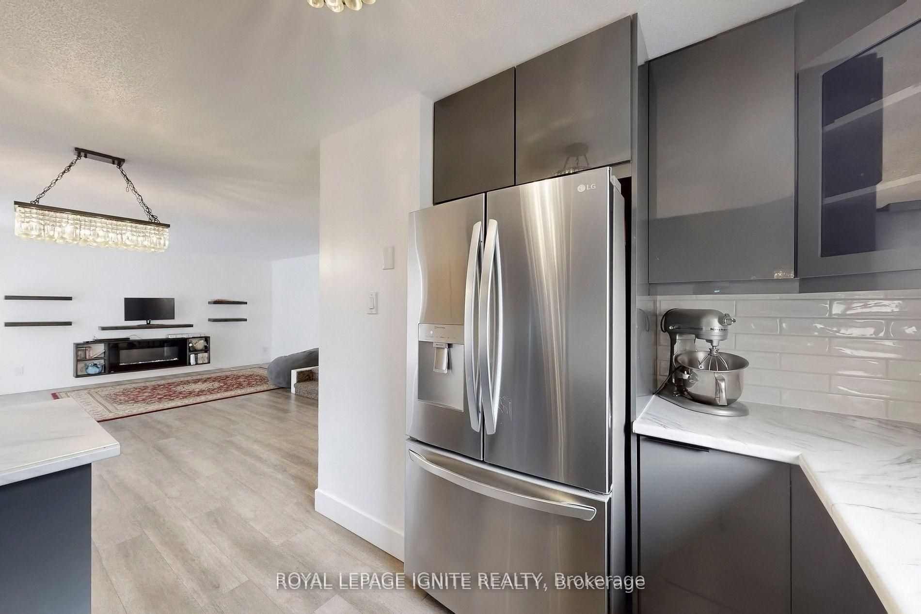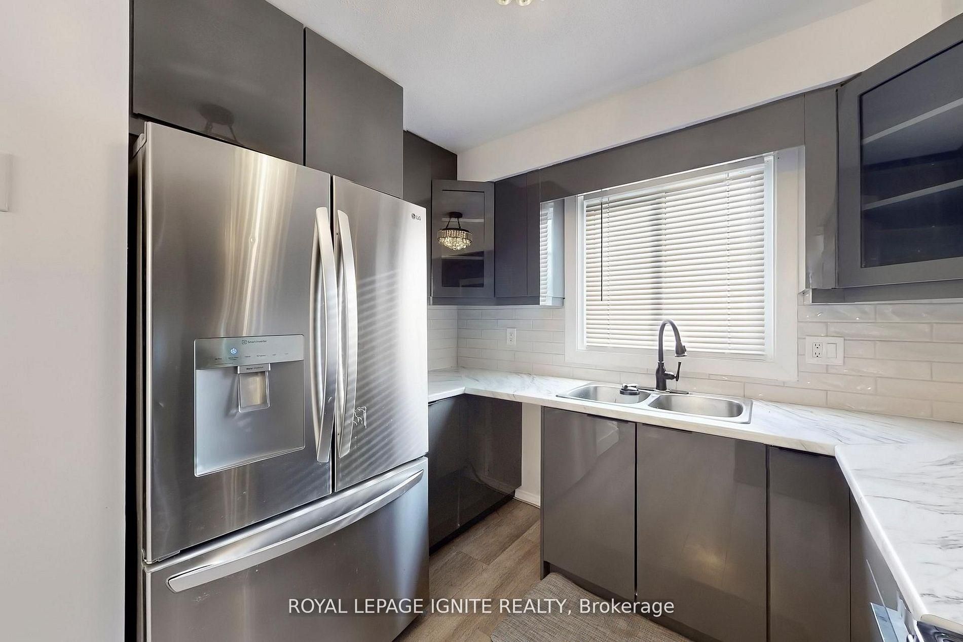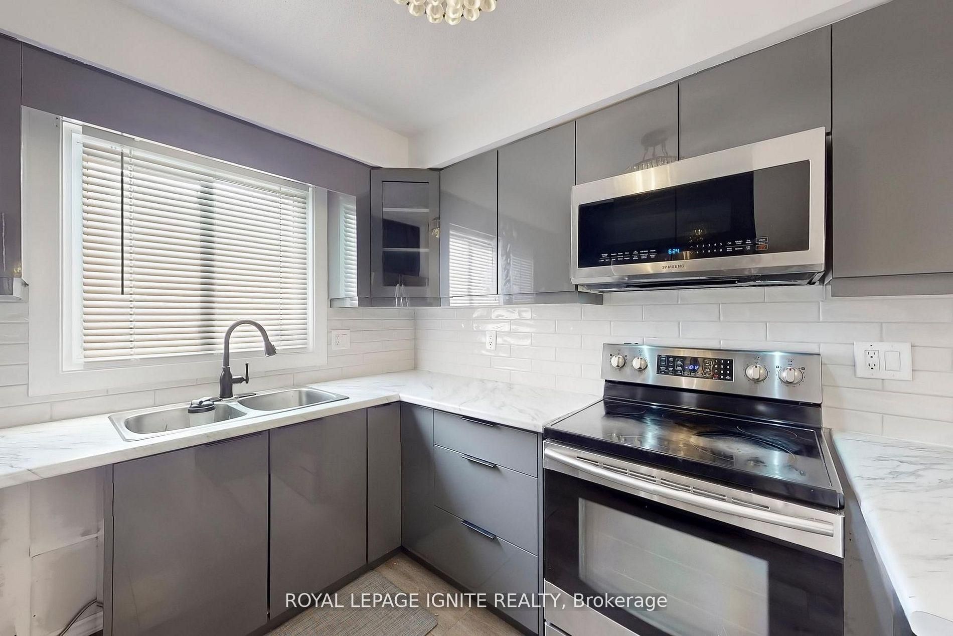 Welcome to Unit 26 at Sunrise Village, a rare 2-storey End unit that has been meticulously transformed from top to bottom. This3+2 bedroom, 3-bathroom home offers over 1,100 sq. ft. of modern living space, featuring high-efficiency forced air gas heat and central AC-A premium upgrade for this community. The bright, open-concept main floor flows seamlessly into a private, fully fenced outdoor patio, perfect for summer entertaining. The finished lower level is a versatile sanctuary with two lounge spaces modern 4-piece bathroom, walk-in shower. Located steps from Argyle Mall, Near Fanshaw Collage, Top schools, and transit, this move-in-ready gem offers sophisticated living with low maintenance fees ($345) that include water and two parking spots. Don't miss the best-positioned unit in the Complex, making it an ideal choice for both savvy investors and first-time buyers.